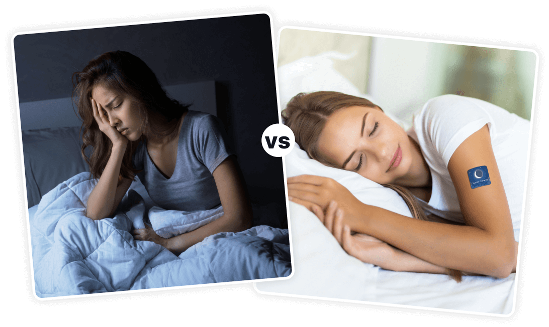Stop tossing and turning for hours. With the Wellamoon patch, you can fall asleep within minutes. Take a warm shower, make your bed, apply the patch, and drift off to sleep